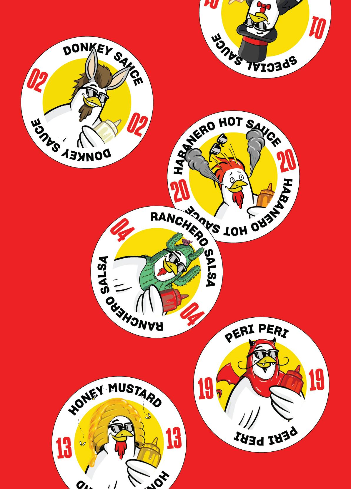 Running with Chicken Guy’s! emphasis on sauce, Use All Five applied a unique illustration of the Chicken Guy! for all twenty two flavors of sauce. This ranged from one of Guy’s favorites – Donkey Sauce – to the spicy devil-like flavor of Peri Peri, to the Miami Vice swag of Cuban Lime Mojo. Designing a new styled Chicken Guy! for each sauce helped communicate both the breadth of inspirations and the goodhearted nature of the brand and its namesake.